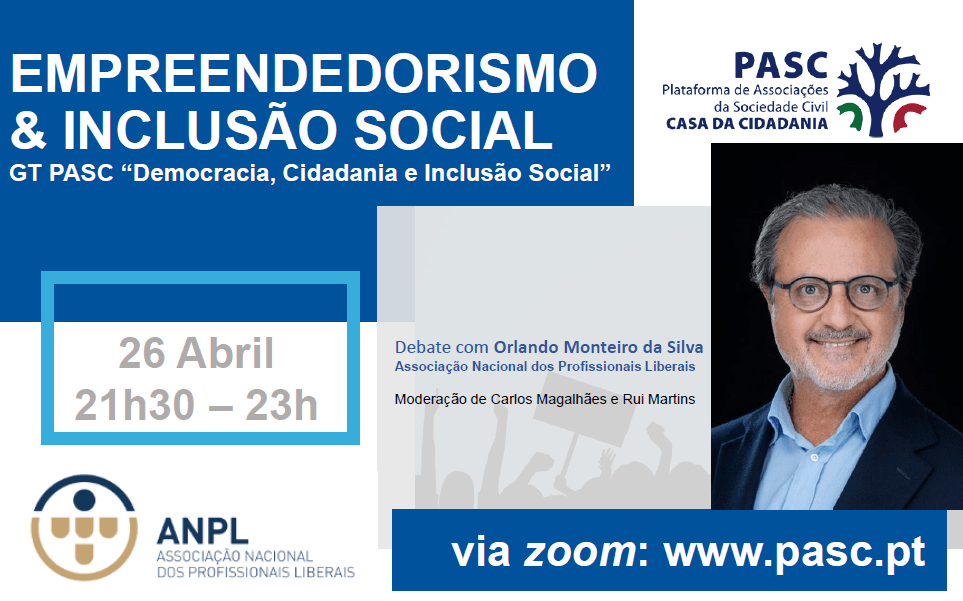 26 de Abril: 1º Debate do GT PASC “Democracia, Cidadania e Inclusão Social”, com Orlando Monteiro da Silva, Presidente da Associação Nacional dos Profissionais Liberais Publicado em Abril 3, 2023Abril 12, 2023 por casadacidadania Entrar na reunião Zoomhttps://us06web.zoom.us/j/89367730915 ID da reunião: 893 6773 0915 Partilhar Click to share on X (Abre numa nova janela) X Clique para partilhar no Facebook (Abre numa nova janela) Facebook Carregue aqui para enviar por email a um amigo (Abre numa nova janela) E-mail Gosto Carregando... Relacionado