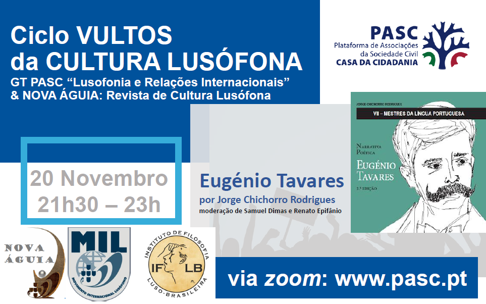 20 de Novembro: 12ª sessão do Ciclo PASC/ NOVA ÁGUIA: Vultos da Cultura Lusófona – Eugénio Tavares, Mestre da Língua Portuguesa… Publicado em Novembro 9, 2023Novembro 12, 2023 por casadacidadania Entrar Zoom Reuniãohttps://us06web.zoom.us/j/89115739516 ID da reunião: 891 1573 9516 Partilhar Click to share on X (Abre numa nova janela) X Clique para partilhar no Facebook (Abre numa nova janela) Facebook Carregue aqui para enviar por email a um amigo (Abre numa nova janela) E-mail Gosto Carregando... Relacionado