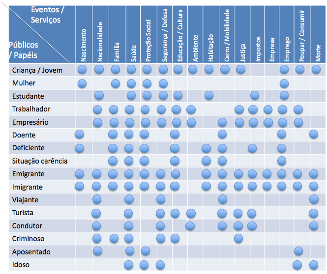 Tabela de Públicos / Eventos de Vida (Serviços)