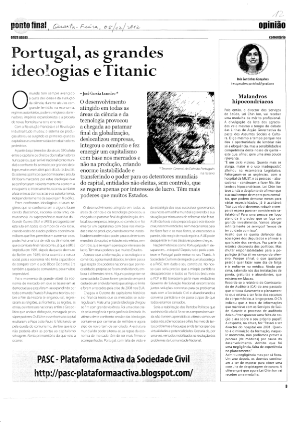 por José Eduardo Garcia Leandro (Este texto representa apenas o ponto de vista do autor, não da PASC, nem das associações que a compõem).