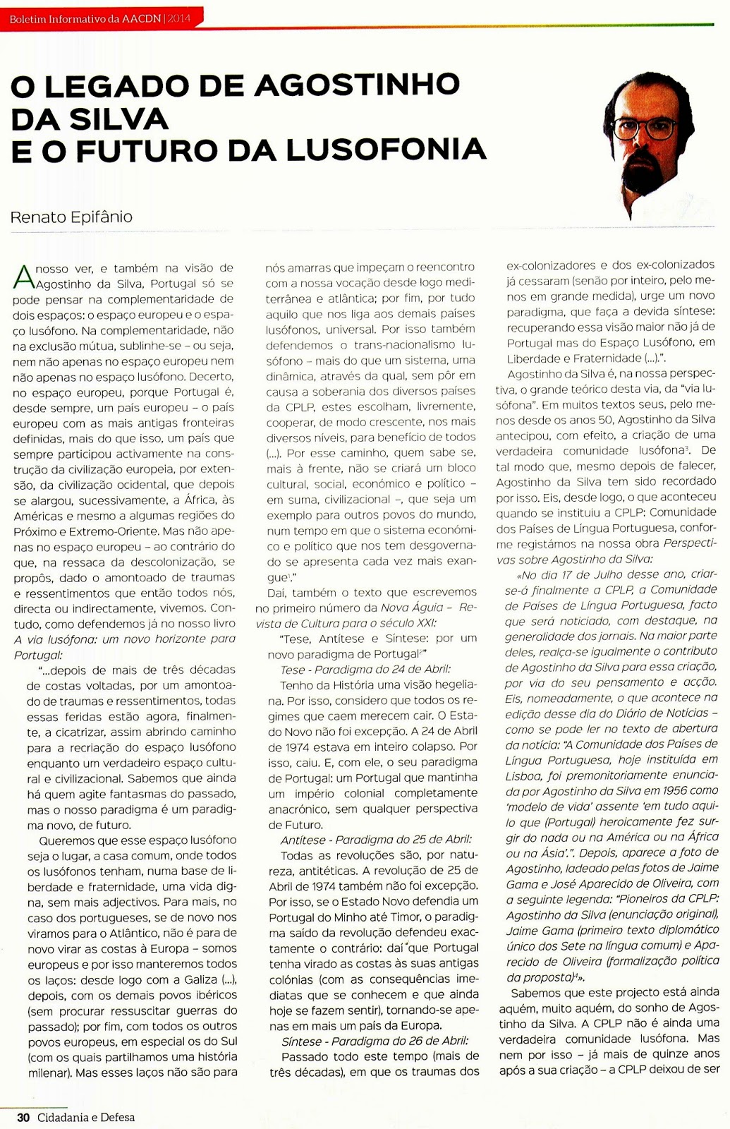 É neste clima que o tema do milagre português, que tem a memória camoniana da unidade europeia congregada com a memória da unidade não perdida, assumiu a lusofonia com a importância que sustenta o autor deste livro oportuno, e que não ignora o vigor com que analistas atentos, multiplicam os avisos e críticas contra a forma como a unidade europeia vai perdendo vigor, com falta de conceito estratégico, com tendência para reviver o directório de má história, tudo agravando a circunstância da lusofonia e do luso-tropicalismo, que devia ser a bandeira do enfraquecido Estado Português, que é a do nosso autor, que não pode ser diminuída, porque é um alicerce nosso.