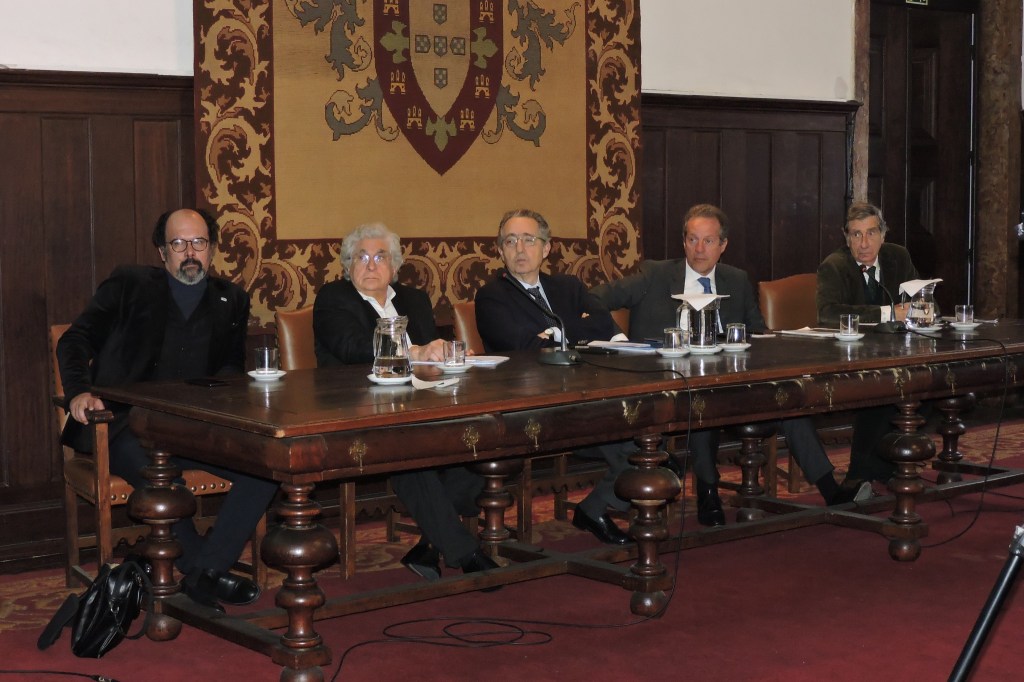 Mesa da sessão. Da esq. para a direita: Dr. Renato Epifânio, Dr. José Poças Esteves, Dr. José Ribeiro e Castro, Eng.º José Ribau Esteves e Comandante Orlando Temes de Oliveira.