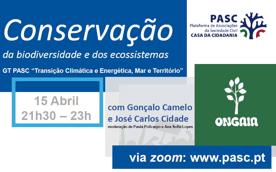 15 de Abril: 8º Debate do GT PASC “Transição Climática e Energética, Mar e Território”, com membros da OnGaia, nova Associação PASC…