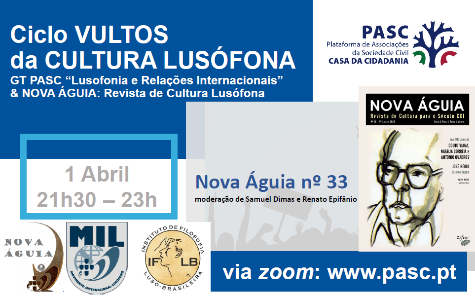 3 de Junho: 18ª sessão do Ciclo PASC/ NOVA ÁGUIA “Vultos da Cultura Lusófona”: Camões, nos seus 500 anos, com João Micael, da Matriz Portuguesa, nova associação PASC…
