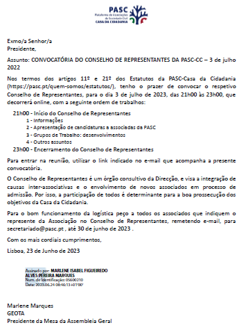 15 novos membros da PASC, eleitos, por unanimidade, em Assembleia Geral…