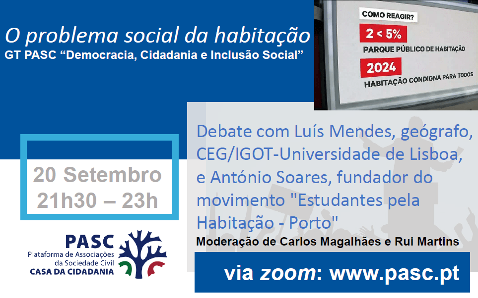 20 de Setembro: 4º Debate do GT PASC “Democracia, Cidadania e Inclusão Social”: O problema social da habitação…