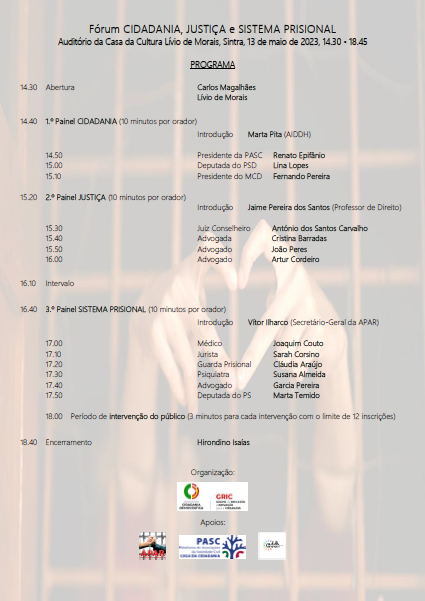 13 de Maio, com o apoio da PASC: “Cidadania, Justiça e Sistema Prisional”