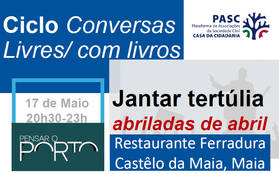 No passado dia 17 de maio, no Restaurante Ferradura, Castêlo da Maia, realizou-se mais um jantar/tertúlia promovido pela PASC – Casa da Cidadania, com o apoio da associação Pensar O Porto, desta vez com o mote de “as abriladas de abril”. Na presença de cerca de vinte e cinco convivas, intervieram Manuel Dias, Joaquim Couto, Vieira da Cunha e Nuno Cardoso. Carlos Magalhães abriu as “hostilidades” e Renato Epifânio, em nome da PASC, encerrou a sessão.